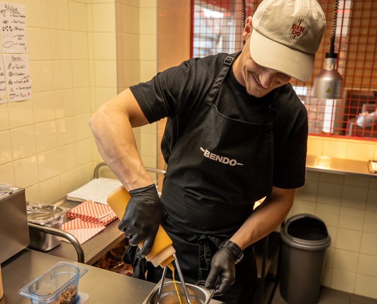 Bendo, c'est le pari de proposer un fast food où l'on n'a pas à choisir entre le tacos, le burger ou le kebab. Une cuisine savoureuse, à base de produits frais et 100% fait maison, jusqu'à notre broche montée chaque jour à la main dans notre cuisine.